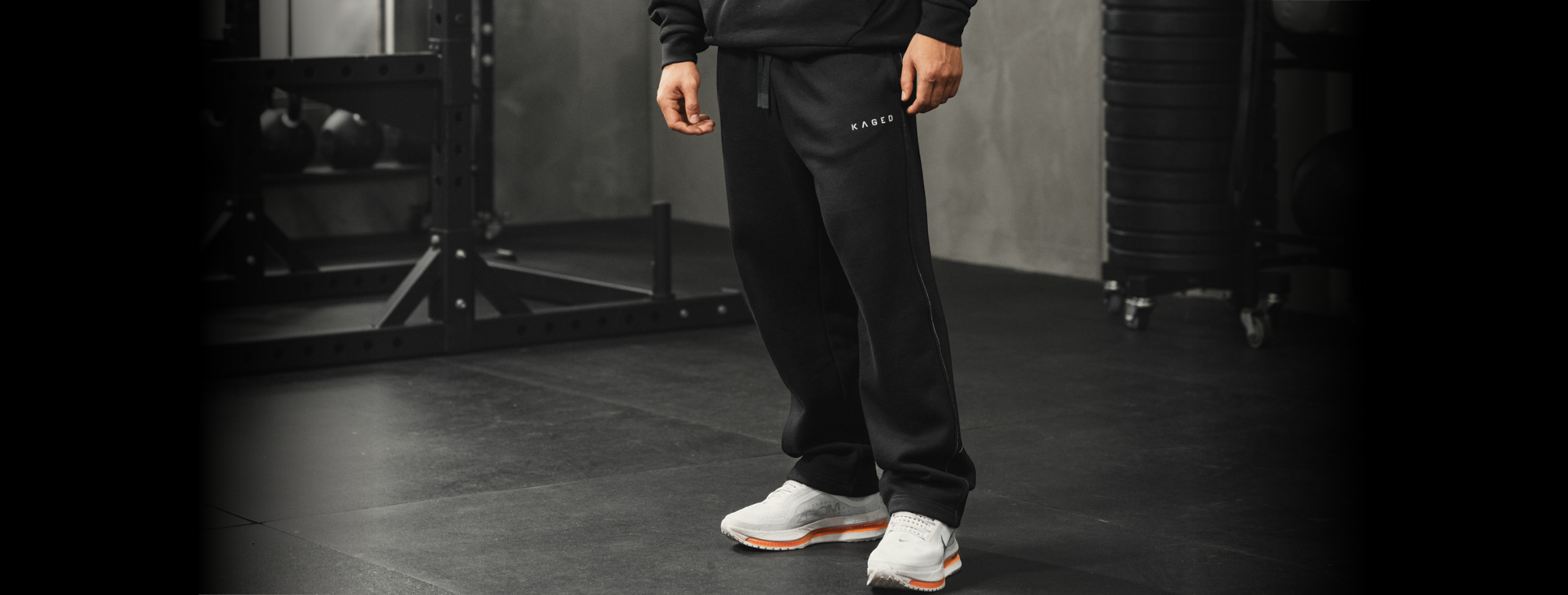 Straight-leg jogger constructed from a midweight 75% cotton / 25% spandex fleece. Fabric has a soft, plush interior with a smooth exterior and moderate stretch for mobility. Features include an elastic waistband with drawstrings finished in flat rubber tips, a right-side concealed zip pocket for secure storage, and standard hand pockets. White stitch detailing runs down the side seams for a subtle technical accent.Branding includes a small Kaged logo on the upper left front and the Ascent symbol placed on the back of the lower leg.